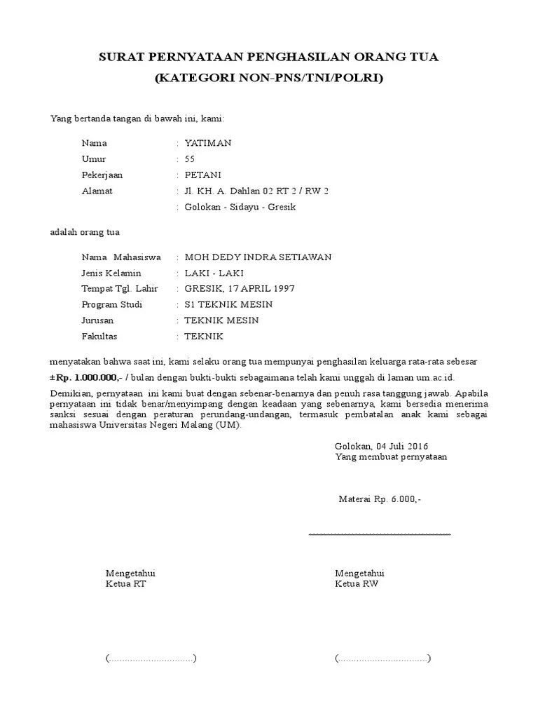 Surat Penghasilan Orang Tua Dari Rt : Contoh Surat Pernyataan Penghasilan Orang Tua Update 2020 : We did not find results for: