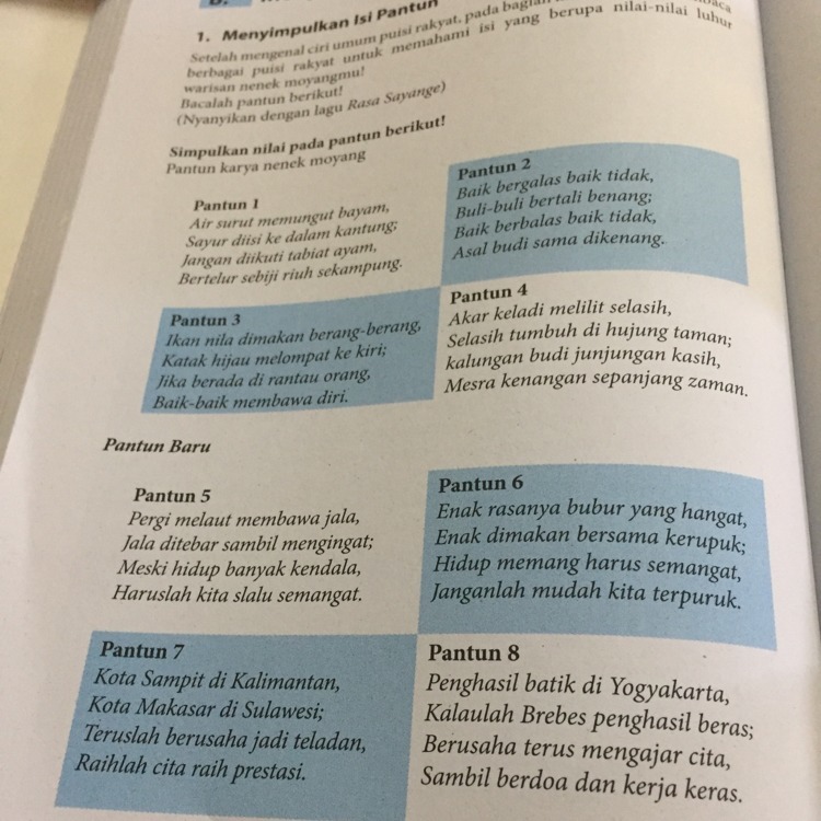 175 bahasa indonesia diskusikan hal berikut a carilah makna kata sulit pada pantun tersebut b uraikanlah dengan bahasamu sendiri isi pantun tersebut c . A carilah makna kata sulit pada syair di tersebut b download 1200 x 1600 pixel. B) simpulkan nilai nilai moral / nasihat yang terdapat pada gurindam di atas! A) carilah makna kata sulit pada pantun tersebut! Bertelur sebiji riuh sekampung a cari lah makna kata sulit pada pantun tersebut b uraikanlah dengan bahasamu sendiri isi pantun tersebut .